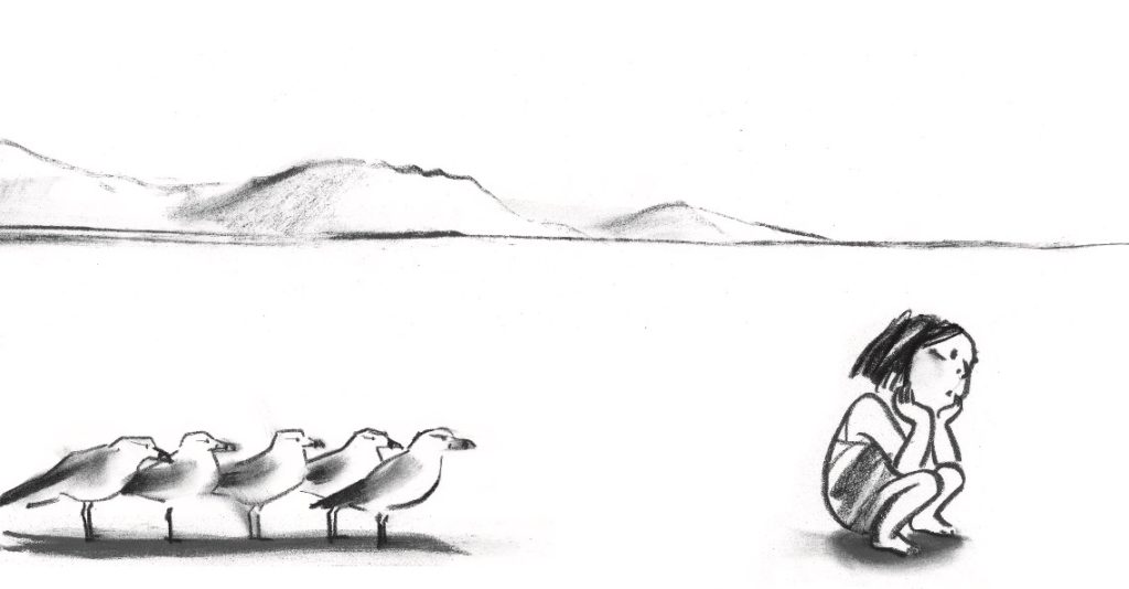 También existen varios aspectos en los álbumes ilustrados sin palabras. Creo que son especialmente efectivos a la hora de expandirse y extenderse en un momento dado. Puesto que no utilizan subtítulos explicativos en películas del tipo «diez años más tarde» para indicar saltos temporales, los álbumes ilustrados sin palabras tienden a centrarse en retratar acontecimientos continuos dentro de un espacio de tiempo limitado. Mientras trabajo, en ocasiones tengo la sensación de que estoy dibujando fotogramas para una película de animación. La trilogía del límite, Suzy Lee