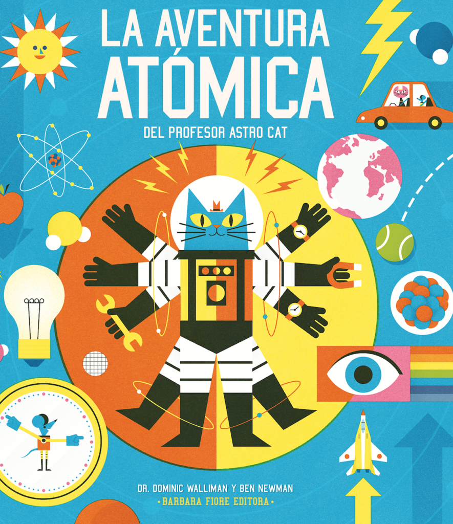 La aventura atómica del profesor Astro Cat es un álbum ilustrado y una primera enciclopedia sobre el fascinante mundo de la física. Un viaje por los pilares de la ciencia para explicar los secretos de la gravedad, la composición de los elementos de la Tierra, el átomo, la tabla periódica, las moléculas, la masa y la densidad, las razones que provocan la flotación y el movimiento de los cuerpos, cómo nos afecta la presión atmosférica, las leyes de Newton… El libro incluye Astrodatos un glosario sencillo y clarificador sobre los diferentes términos que se exploran en el libro; una útil herramienta para captar el interés e incitar a los niños a conocer más sobre la física.