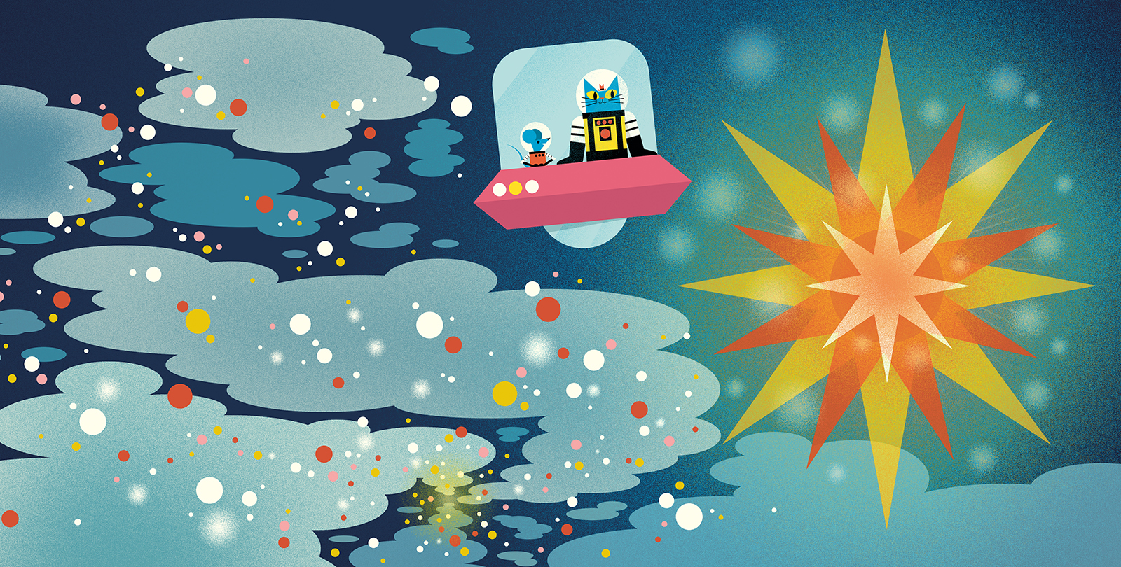 Ahora que ya sabemos cómo funcionan los cohetes espaciales es hora de despegar hacia las estrellas, pero... ¿qué son las estrellas?¿Sabías que "nacen" y "mueren" como nosotros? Quizás no como nosotros, pero también son finitas y las hay de varios tipos diferentes. Pero no corramos, si quieres saberlo todo respecto a estas esferas de gas para eso está El profesor Astro Cat y las estrellas.