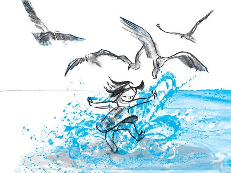 ¡Vivan las vacas!, David Prudhomme y Pascal Rabaté (2019)[/caption] 6. Juegos junto al mar | La ola, Suzy Lee (2008) Es probable que muchos deseen poder disfrutar de la playa del mismo modo que lo hacían de niños. Suzy Lee, galardonada con un premio Hans Christian Andersen, aún nos sorprende con este álbum sin palabras: la niña de la historia juega con los límites de las páginas, barreras invisibles para ella, un puñado de gaviotas y todo el mar azul. [caption id="attachment_13372" align="aligncenter" width="660"]