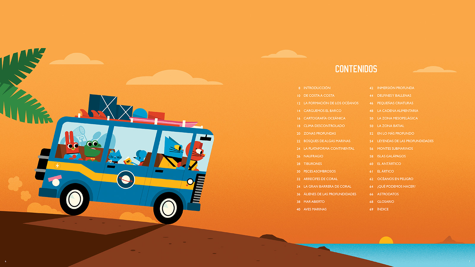 A pesar de que la vida comenzó en el océano y que esta extensa masa de agua cubre más del 70 % de superficie de nuestro planeta, los océanos siguen siendo uno de los lugares más inexplorados de la Tierra. Dominic Walliman y Ben Newman vuelven a unir ciencia e ilustración para desvelarnos un mundo acuático repleto de la vida más fascinante y única. Buceando hasta las fosas Marianas, de visita en las islas Galápagos y rumbo a las frías tierras del Ártico descubriremos los hábitats marinos. Vida que se esconde en las profundidades del océano o cerca de las costas, y que hoy está amenazada por las acciones humanas. Los autores nos invitan también a reflexionar sobre cómo podemos contribuir con sencillas acciones a salvaguardar el ecosistema marino.