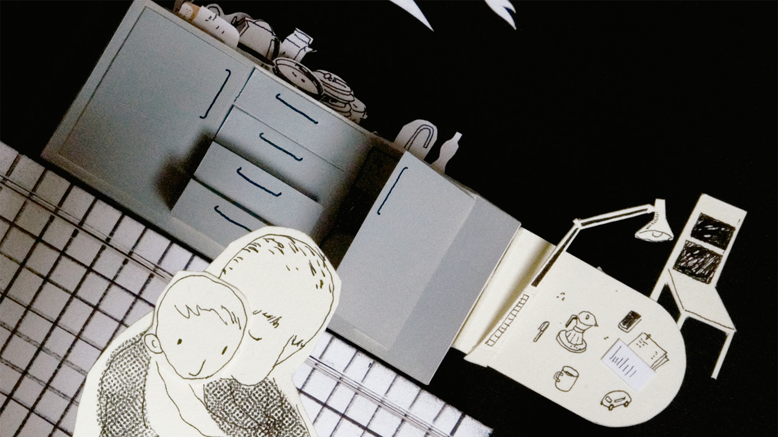 La técnica elegida por el ilustrador es la composición de dioramas. Para ello utiliza trozos irregulares de papeles de colores planos, a veces intervenidos con trazos igual de irregulares que completan la casa, el exterior y los personajes. El texto, por su parte, está dispuesto en cada página con versos breves, que se leen acompasadamente, tal como un cuento infantil antes de dormir o un relato compartido junto a la chimenea.